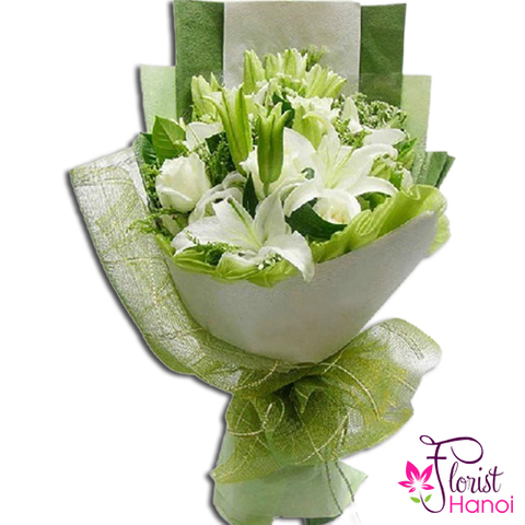This bouquet will make the most amazing impression on the lucky recipient. Featuring a stunning array of white lily and rose flowers, this is the perfect gift for any occasion.
