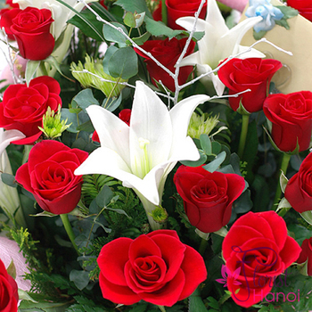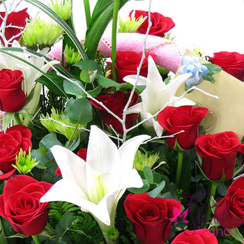 An elegant comnination created with the traditional red rose together with the great white lily. Perfect for occasions when you wish to send feelings of gratitude and love towards a special person.