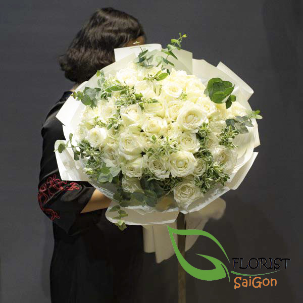 The original symbol of true love, this classic and abundant bouquet of elegant white roses and will enrapture their senses and take their breath away. Order your flower delivery online now, we offer same day flower delivery.