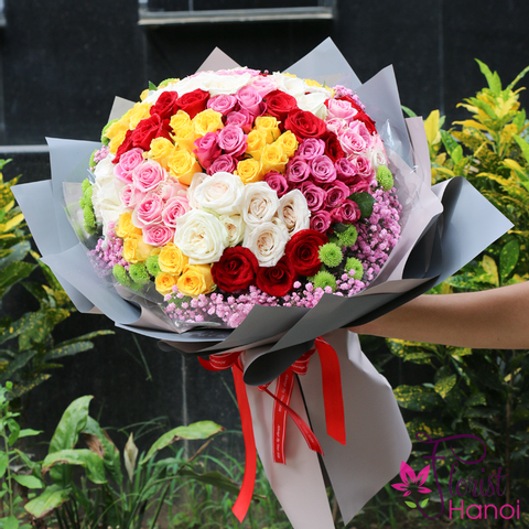 Beautifl bouquet mixed color rose delivery in Hanoi