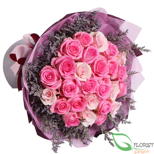 The roses are the perfect way of showing love, care, roamance and admiration. Tight bunch of 30 pink roses nicely wrapped woth lots of fillers and tied with pink color ribbon bow.