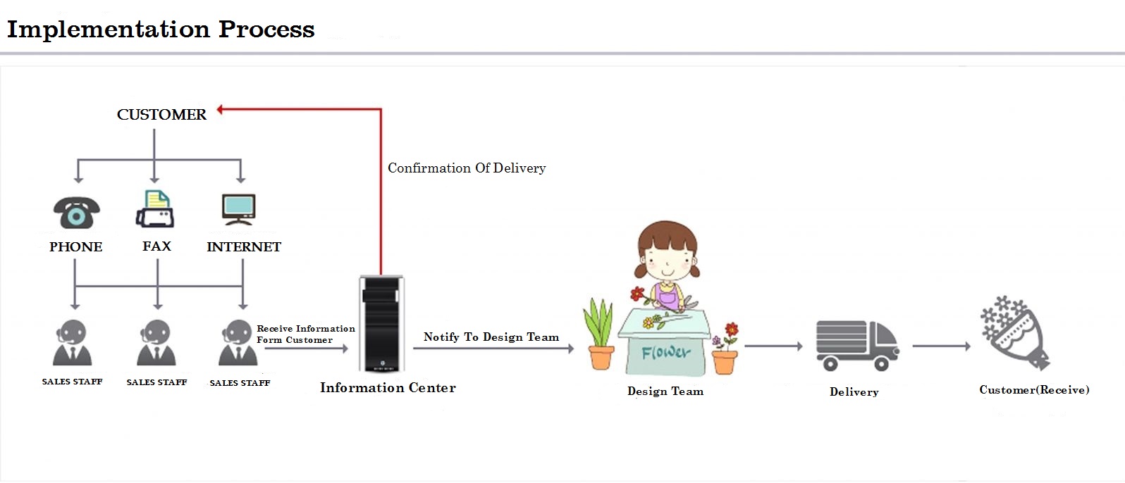 You can select your favourite flowers from the website or of your own and fax to us indicating such information as code, information of buyer (Full name, telephone number, address, payment method), information of receiver (Full name, telephone number, address,) and message content to the receiver etc...