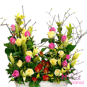 Yellow lilies are slowly spreading their petals, touching the smoothness of roses, and the frangrance of the two flowers overwhelms the senses. The birthday flowers bouquet can be offered as a sign of sincere friendship, to show you gratitude or admiration, or to wish someone dear a speedy recovery. No matter the occasion, with its charm of brightly colors, the bouquet will be received with smile and thanks.