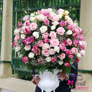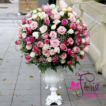 Beautiful roses arrangement mixed with baby breathes in luxury vase. We will deliver flowers same day if received order but we recommend that customer should order before 1-2 days.