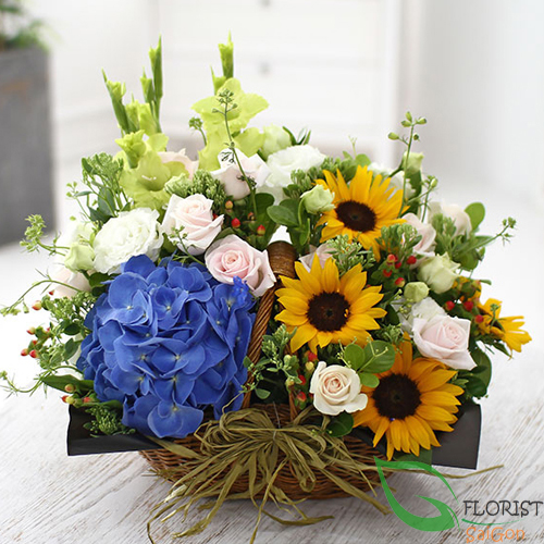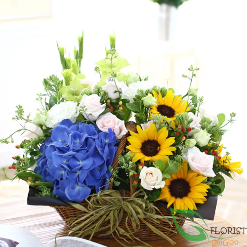| Kind of flowers | Pink roses, sunflowers, hydrangea |