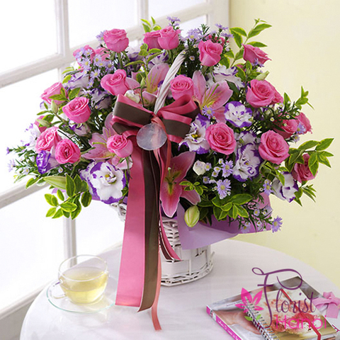 | Kind of flowers | Pink Roses, Lisianthus, Lily |