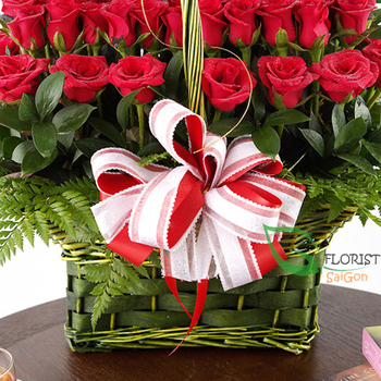 Classically romantic. 100 red roses with greenery. There is no flower that expresses true love as timelessly and as perfectly as the red roses. Florist Saigon’s red roses are always fresh and beautiful, ensuring your message of love endures.