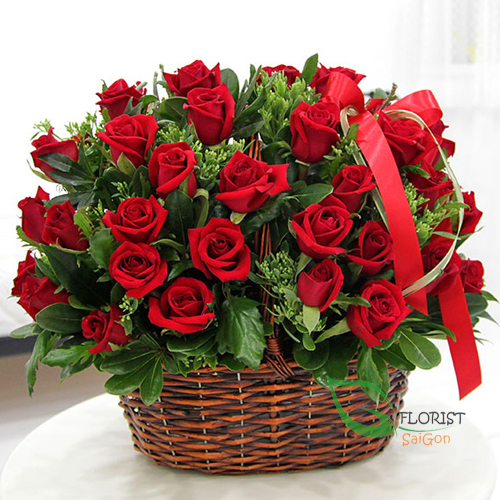 Red rose flower basket