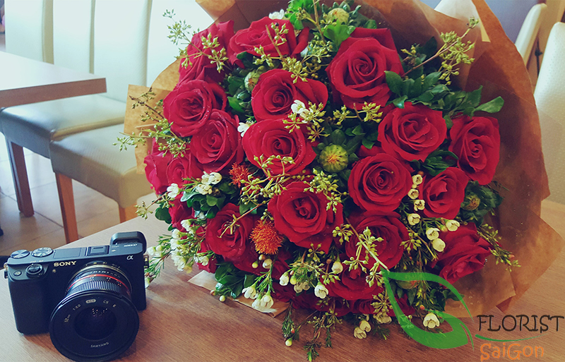 Red roses bouquet to HCM city