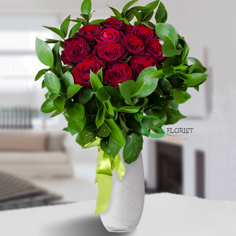 Red roses vase in Saigon flower shop