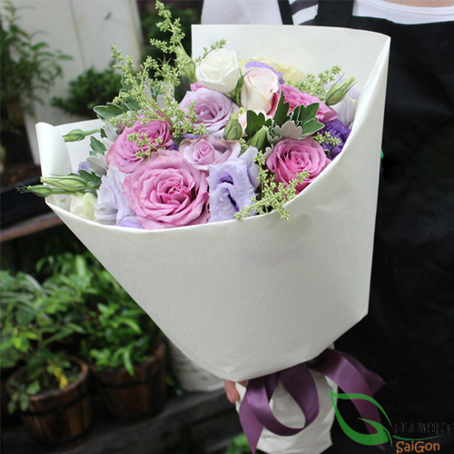 | Kind of flowers | Purple roses, pink roses, lisianthus |