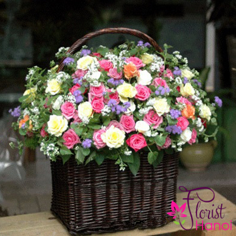 Our assorted flower basket is the ultimate celebration arrangement. These vibrant blooms, available in bouquet of 99 roses will brighten up any room. Perfect for a birthday or graduation…